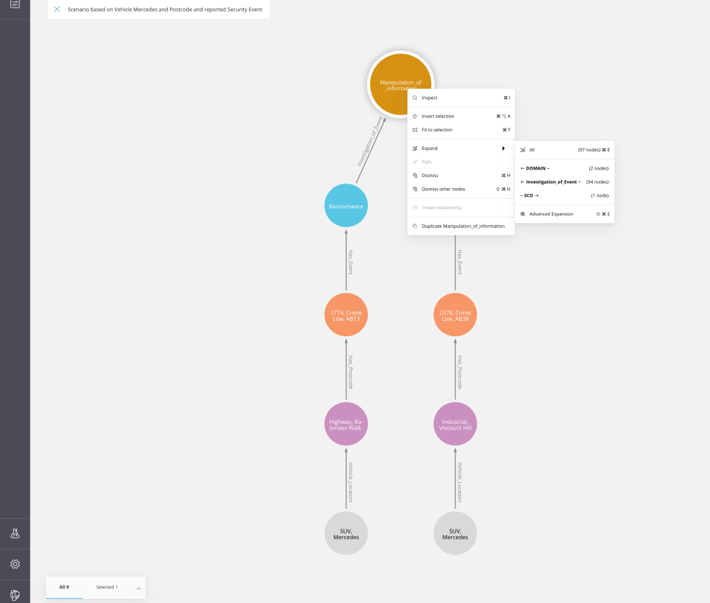 A final extension relates the security event to a Mitre Att&ck pattern class to help with evidence of known attack methods and vectors. Each extension of the original Nodes was able to provide either reference knowledge or additional support for an investigation through the examination of a technology Device Digital Twin and its parts and functions. This final relationship offers threat hunting research scenarios.
