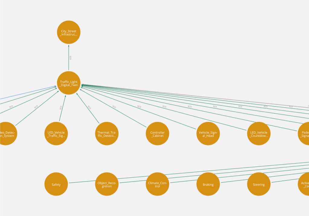 By extending the Vehicle location or Street Node to show that a Traffic Light was in proximity, the relationship to the Traffic Light Digital Twin may indicate if there were the Device Capability (TDM) to communicate with the Vehicle and if this could be the possible source of the malware.